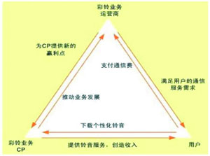 如今,韓國的彩鈴業(yè)務(wù)已遍地開花,超過50%的手機(jī)用戶在使用彩鈴服務(wù),運(yùn)營商因此每月能獲得1500萬美元的收益。小彩鈴喚來了大市場。個人用戶無需購買昂貴的終端就可通過彩鈴業(yè)務(wù)向外界傳遞個性和情感。商業(yè)用戶將回鈴音設(shè)置成廣告/宣傳語,使客戶在與企業(yè)員工交流的同時接收企業(yè)的相關(guān)信息,例如企業(yè)文化、產(chǎn)品、銷售信息等,直接或間接地增加了企業(yè)的市場機(jī)會。彩鈴業(yè)務(wù)為運(yùn)營商帶來了直接的經(jīng)濟(jì)收益,也帶來了特征用戶群,在語音增值業(yè)務(wù)中實(shí)現(xiàn)了產(chǎn)業(yè)鏈合作。同時,運(yùn)營商通過對特征用戶群的研究分析發(fā)現(xiàn)了未來商機(jī),并通過在語音增值業(yè)務(wù)產(chǎn)業(yè)鏈中引入ICP/ISP達(dá)到了資源的有效利用。
