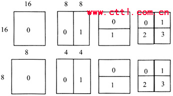 如圖3所示,陰影部分宏塊屬于片組0,白色部分屬于片組1。假設(shè)片組O在傳輸過程中丟失,由于丟失宏塊的相鄰宏塊都屬于片組1,這樣差錯恢復(fù)工具就會有更多的可利用信息來恢復(fù)丟失片的數(shù)據(jù)。