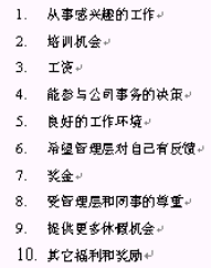 在對員工關(guān)心的十個指標(biāo)的調(diào)研、統(tǒng)計分析后發(fā)現(xiàn),在企業(yè)提供良好的培訓(xùn)體系前提下,人員的流失與企業(yè)提供的薪酬有必然的關(guān)系。各因素影響程度由高到低排序如下: