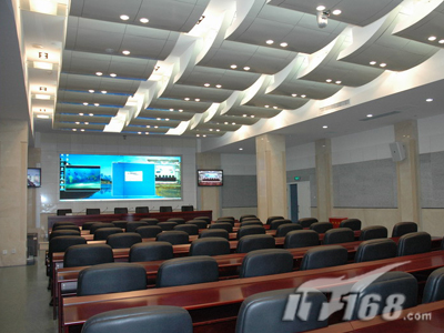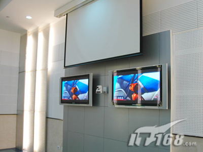 在副會(huì)場方面,和主會(huì)場區(qū)別不大,不過比主會(huì)場要光亮一點(diǎn),面積也小了很多,所以主顯示系統(tǒng)只需要SONY PX40正面投影(120寸)就可以搞定。VPL-PX40可以多種方式安裝,包括桌面正投,吊頂及背投。供選購的兩款鏡頭擴(kuò)展了安裝的靈活性。中央控制開關(guān)功能讓用戶能通過中央電源開關(guān)直接開關(guān)投影機(jī)。VPL-PX40還配備了獨(dú)特的密碼認(rèn)證系統(tǒng),采用SONY液晶板的新型光學(xué)系統(tǒng),結(jié)合265W