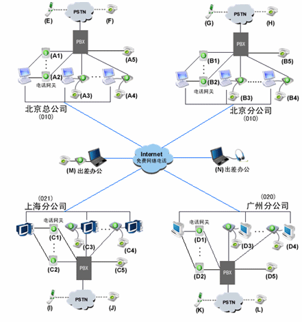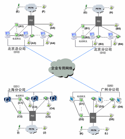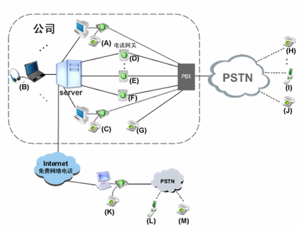 由玻瑞器客戶(hù)端和電話(huà)網(wǎng)關(guān)組成企業(yè)軟交換系統(tǒng)