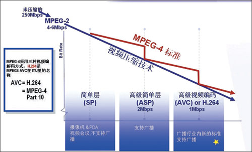 當(dāng)前在IPTV業(yè)務(wù)中,音視頻編解碼技術(shù)的選擇呈現(xiàn)了三足鼎立的狀況,即MPEG4 ASP、H.264和AVS。三大標(biāo)準(zhǔn)的斟選將對IPTV產(chǎn)業(yè)形成重要影響。圖 MPEG-4編碼方案