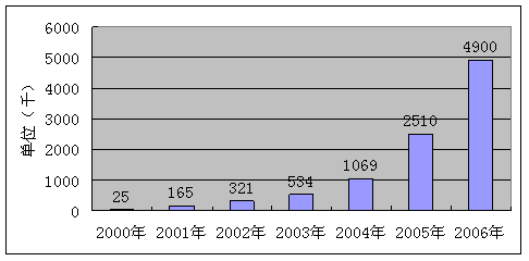 移動E-mail接收方式分為三種:pull、在線瀏覽和push。圖1 RIM公司2000-2006年Blackberry用戶數(shù)