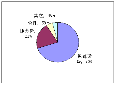 加拿大RIM公司是最早推出移動PushE-mail業(yè)務(wù)的企業(yè),黑莓業(yè)務(wù)主要是以該公司為核心,也是目前最成功的移動PushE-mail業(yè)務(wù)。該公司幾乎控制著圍繞黑莓業(yè)務(wù)的所有產(chǎn)品,包括終端、服務(wù)器、客戶端軟件、解決方案等,并且吸引了一批獨立軟件公司開發(fā)基于黑莓的各種軟件產(chǎn)品,如即時通信軟件、移動營銷軟件、移動CRM軟件等,RIM公司向這些軟件開發(fā)公司收取專利費用。另外,在業(yè)務(wù)方面,由于RIM公司控制NOC的運(yùn)維,因此運(yùn)營商還需要向RIM公司支付服務(wù)費。圖2為RIM公司2006財年業(yè)務(wù)收入結(jié)構(gòu)。