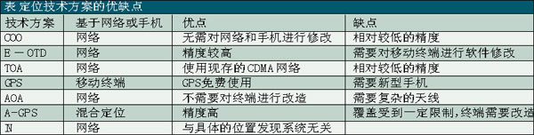 基于移動(dòng)終端的定位技術(shù)包括全球定位系統(tǒng)——GPS、基于移動(dòng)終端信號(hào)發(fā)送和接收的時(shí)戳或角度的技術(shù)——E-OTD(增強(qiáng)觀(guān)測(cè)時(shí)間差分)/TOA(到達(dá)時(shí)間),以及來(lái)源蜂窩小區(qū)——COO技術(shù)(還有所謂的輔助GPS—A-GPS技術(shù)作為對(duì)COO技術(shù)的補(bǔ)充)。