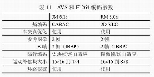 對視頻編碼標準進行客觀評價的常用方法是峰值信噪比PSNR。表9、表10分別給出了AVS與MPEG-2標準以及AVS與MPEG-4 AVC/H.264標準main