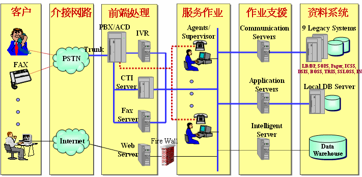 利用網(wǎng)路平臺在整合加入多項服務(wù),如寬頻電話咨詢﹙ADSL﹚、數(shù)據(jù)電路、智慧型網(wǎng)路(IN) 、及查號加值服務(wù)(1288)等業(yè)務(wù)使本系統(tǒng)展現(xiàn)更優(yōu)異之功能。