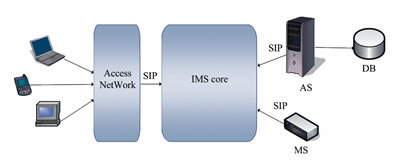 IMS網(wǎng)絡(luò)選擇SIP協(xié)議作為呼叫控制協(xié)議,選擇Diameter協(xié)議為運行AAA(認證、授權(quán)、計費)功能的協(xié)議,在網(wǎng)絡(luò)安全方面采用IPSec技術(shù)和TLS安全傳送協(xié)議。IMS體系結(jié)構(gòu)包括應(yīng)用層平面、控制層平面、媒體層平面3個部分。應(yīng)用層包括了多種類型的應(yīng)用服務(wù)器,這些主持和執(zhí)行服務(wù)的SIP實體,可操作在SIP代理模式、SIPUA模式和SIPB2BUA模式下。應(yīng)用層為用戶提供多媒體業(yè)務(wù),它獨立于網(wǎng)絡(luò)的接入層、核心控制層存在,能保證業(yè)務(wù)開發(fā)和提供的獨立性?刂茖犹幚頃捫帕,由不同的功能實體來處理信令流,x-CSCF(呼叫會話控制功能)、HSS(歸屬用戶服務(wù)器)、MGCF(媒體網(wǎng)關(guān)控制功能)、MRFC(媒體資源功能控制器)等實體協(xié)同操作,提供用戶的統(tǒng)一認證、呼叫控制、策略管理、漫游和計費等功能。媒體層作為一個媒體宣告服務(wù)器,直接在用戶之間、用戶和IMS媒體功能(如媒體資源控制處理器MRFP)之間傳輸媒體流。