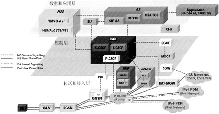 IMS由提供IP多媒體業(yè)務(wù)、如話音、視頻、文本、聊天等所有架構(gòu)在分組傳送網(wǎng)上的核心網(wǎng)單元構(gòu)成,相關(guān)實(shí)體包括CSCF、MGCF、MRF等,參見(jiàn)第2節(jié)。