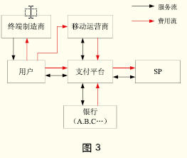 該模式中,第三方支付服務提供商是獨立于銀行和移動運營商之外的經濟實體,其自己拓展用戶,與銀行及移動運營商協(xié)商合作,提供手機支付業(yè)務,見圖3。