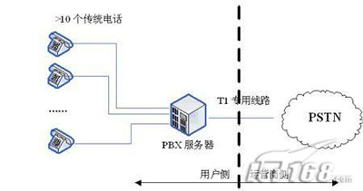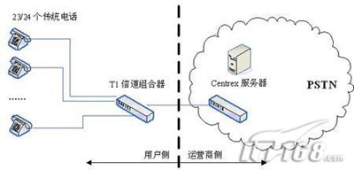 相反,在傳統(tǒng)的PBX或新興的IP-PBX中,這些功能模塊通常配置在用戶側(cè)的網(wǎng)絡(luò)元素上,而且通過一條或多條專用線路T1(傳統(tǒng)PBX)或DSL(新興PBX)連接到中心辦公室,用PSTN的連接。圖1說明了PBX和Centrex服務(wù)的區(qū)別。而且,DSL還能在相同的鏈路支持語音和數(shù)據(jù)的傳輸,而且維護(hù)鏈路的成本也遠(yuǎn)遠(yuǎn)小于維護(hù)T1所需的代價。另外,由于呼叫控制能夠在本地裝載,而IP-PBX能夠支持Internet連接,因此每23(T1-PRI)或24(T1-CAS)個電話終端就不再需要一條專用線路T1的支持了。(后續(xù)將進(jìn)一步說明)(a)傳統(tǒng)Centrex服務(wù)
