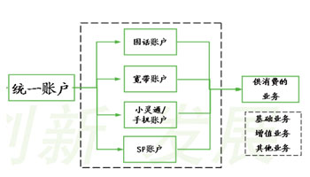 由于目前我國的信用體系尚不完善,所以,電信企業(yè)自身需要首先完善企業(yè)級的客戶信用體系,而設(shè)立統(tǒng)一實名制賬戶是完善客戶信用體系的有效途徑。首先,建立實名制賬戶便于固網(wǎng)運營商構(gòu)建相對完整、準(zhǔn)確的客戶信息資料庫。其次,通過建立統(tǒng)一賬戶,可以將目前彼此孤立的固定電話、小靈通、寬帶、未來的手機業(yè)務(wù)及增值業(yè)務(wù)等各子消費賬戶相關(guān)聯(lián),從而方便運營商建立客戶業(yè)務(wù)記錄,以及對多消費賬戶進(jìn)行統(tǒng)一的信用管理。第三,運營商可以針對統(tǒng)一賬戶的消費總額提供積分獎勵,增加用戶黏度。統(tǒng)一賬戶與各消費賬戶的關(guān)聯(lián)關(guān)系如圖4所示。