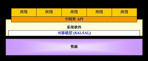 從應(yīng)用的角度來(lái)看,中間件API位于應(yīng)用層和系統(tǒng)軟件層之間,由系統(tǒng)軟件層提供一套獨(dú)立的API給應(yīng)用層調(diào)用。