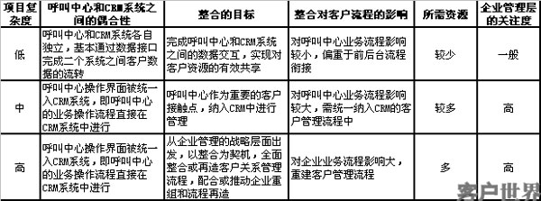 系統(tǒng)能力的優(yōu)化和提升:系統(tǒng)性能的優(yōu)化是每個IT項目都要考慮的事情。通過呼叫中心平臺和CRM系統(tǒng)的整合項目,呼叫中心平臺的處理能力和穩(wěn)定性都應(yīng)有所提升。同時,整合項目還應(yīng)考慮呼叫中心未來的業(yè)務(wù)發(fā)展,通過在現(xiàn)在或?qū)硪攵绦、EMAIL、WEBPHONE等功能,可以使傳統(tǒng)的呼叫中心向多媒體客戶服務(wù)中心發(fā)展,使之成為企業(yè)不可或缺的客戶關(guān)系管理和市場營銷渠道。