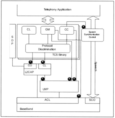 (3)CO(Connection)接口利用點(diǎn)對(duì)點(diǎn)信令發(fā)送TCS消息給L2CAP,以便在面向連接的信道上傳輸。