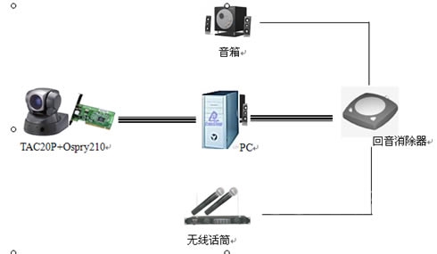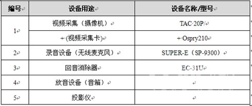 設(shè)備要求:攝像機、投影儀、音箱(配"回音消除器")、麥克風。