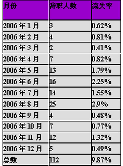 1、2006年1月-2007年3月員工流失率如下