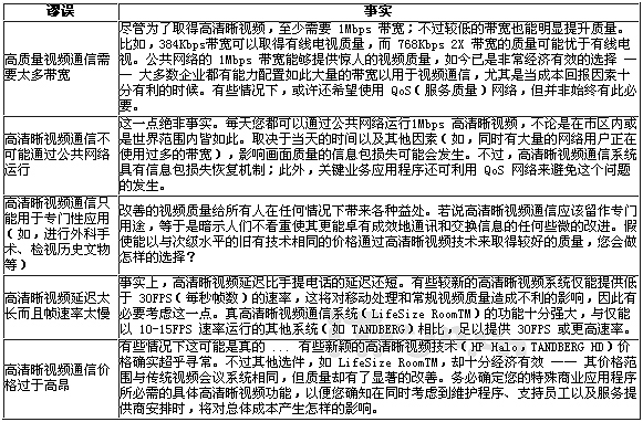 有關高清晰視頻通信的廖論與事實