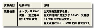 表2Vodafone英國數(shù)據(jù)流量按天計費(fèi)