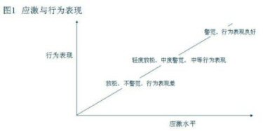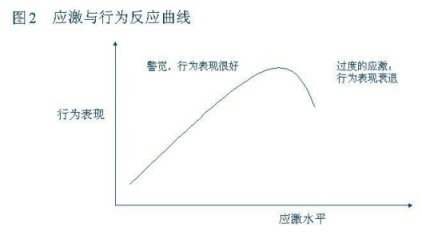 當(dāng)應(yīng)激水平處于一個較低的指標(biāo)時人在心理上處于一個放松、不警覺的狀態(tài),從而關(guān)聯(lián)的行為表現(xiàn)就比較差但隨著應(yīng)激水平的加大,相關(guān)聯(lián)的形為表現(xiàn)就會從中等向表現(xiàn)良好過渡。