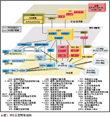 首先,IMS鑒于VoIP的成功應(yīng)用,在承載層摒棄了長(zhǎng)期以來在傳統(tǒng)電信網(wǎng)中占主導(dǎo)地位的電路交換(CS)域,采用基于IP技術(shù)的單一的PS域傳輸各種媒體和信令數(shù)據(jù)流,即首次提出在通信網(wǎng)中采用全I(xiàn)P承載網(wǎng)絡(luò),使之成為通信網(wǎng)融合的底層基礎(chǔ)。