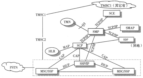 采用集中控制進行系統(tǒng)資源管理,保證了系統(tǒng)的安全性。特點是業(yè)務用戶和業(yè)務提供者能經(jīng)常及時地修改業(yè)務用戶數(shù)據(jù),并可通過遠程SMS終端來管理。SMAP負責業(yè)務用戶受理。