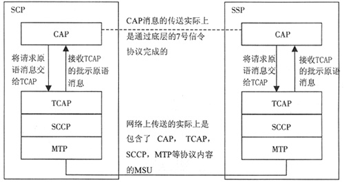 移動智能網(wǎng)應用部分(CAP)是遠程操作服務單元(ROSE),ROSE規(guī)程包括在TCAP成份子層中,并作為單位數(shù)據(jù)(UDT)放在SCCP中傳送。我國CAP是建立在以TCAP和SCCP為基礎的No.7信令網(wǎng)傳送的,CAP受限于SSP-SCP、SCP-IP之間的接口規(guī)范。