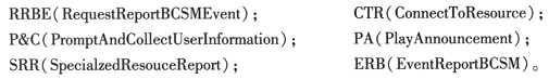 從分布功能平面觀察,每個業(yè)務分支對應了一段CAP消息流。預付費用戶查詢業(yè)務流程是移動智能網(wǎng)中比較典型的一個業(yè)務,300業(yè)務的主要流程是:用戶撥接入碼,撥語言位,選擇流程,報余額,通話結束掛機等。CAP的消息流引起自動機的狀態(tài)轉(zhuǎn)移從而觸發(fā)下列消息事件,為簡單起見,我們在圖例中使用消息的縮寫,具體消息縮寫如下: