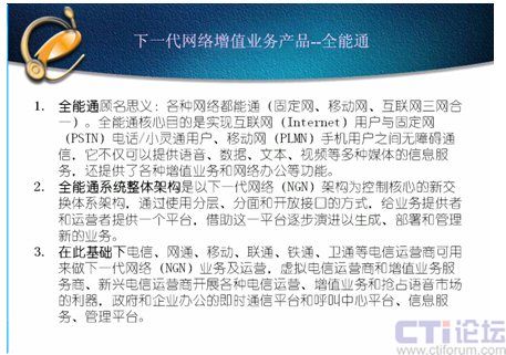 何謂CTI?有許多人都是非常片面的理解,在呼叫中心市場把CTI行業(yè)帶到最紅火的第二次高潮時許多人都以為CTI就是呼叫中心、呼叫中心就是CTI;2002年當呼叫中心市場開始出現(xiàn)萎縮時,許多大公司紛紛把CTI裁剪,還有許多公司倒閉時,剩下的公司日子很難過時,許多人認為CTI完了、紛紛轉(zhuǎn)行。我在2003年1月6日‘中國計算機報社舉辦了2003年CTI和呼叫中心研討會’時講過:呼叫中心市場很冷,但CTI市場不冷,CTI行業(yè)又要開復(fù)蘇,因為我通過一年多的增值業(yè)務(wù)的摸索,認為增值業(yè)務(wù)將重新帶動CTI行業(yè)第三次高潮,關(guān)鍵在于增值業(yè)務(wù)的創(chuàng)新應(yīng)用。隨后的幾年里增值業(yè)務(wù)把CTI行業(yè)帶到一個新的高度,許多人又認為CTI就是IVR,就是增值業(yè)務(wù);但到了07年增值業(yè)務(wù)市場嚴重萎縮,大家又以為CTI不行了、紛紛轉(zhuǎn)行和離開。
