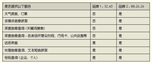 而另一家歐洲領(lǐng)先的電話信息查詢運(yùn)營商意大利SEAT Pagine Gialle則細(xì)分客戶需求,推出從基本號(hào)碼服務(wù)到地理信息搜索、預(yù)定等一系列服務(wù),并通過中低端(12.40)和中高端(89.24.24)兩個(gè)品牌進(jìn)行差異化運(yùn)營。從下表中可以看到兩個(gè)品牌提供的服務(wù)。其中,中高端品牌89.24.24除了簡單的號(hào)碼查詢、位置查詢和話務(wù)轉(zhuǎn)接以外,還提供一系列深度信息查詢等服務(wù),并且已經(jīng)占到總話務(wù)量的63%。