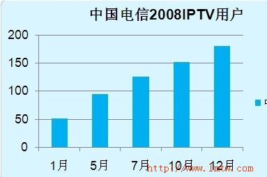 從08年初的51萬用戶到年末的180萬,中國電信IPTV即使面臨政策的限制,仍獲得了極大的發(fā)展。IPTV作為中國電信的戰(zhàn)略新興業(yè)務(wù),作為中國電信切入視頻服務(wù)領(lǐng)域、帶動寬帶業(yè)務(wù)持續(xù)發(fā)展的重要種子業(yè)務(wù),其價(jià)值正被日益認(rèn)可。
