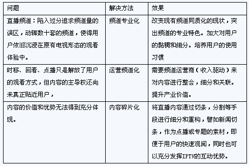 IPTV發(fā)展中,傳統(tǒng)視頻業(yè)務(wù)既是切入點(diǎn),同時(shí)也是業(yè)務(wù)收入的重要來源。但目前視頻業(yè)務(wù)的價(jià)值還未得到充分體現(xiàn)。互動性優(yōu)勢還未得到充分挖掘。