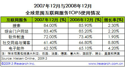 2008年互聯(lián)網(wǎng)服務(wù)排名顯示 社交網(wǎng)絡(luò)與博客發(fā)展最快