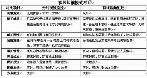 伴隨著社會(huì)經(jīng)濟(jì)和信息化技術(shù)的飛速發(fā)展,視頻監(jiān)控應(yīng)用在社會(huì)安全的各個(gè)行業(yè),平安城市、安全生產(chǎn)、森林防火、公園景區(qū)、公路交通等圍繞在人們?nèi)粘I詈凸ぷ髦車谋姸鄳?yīng)用都已經(jīng)離不開視頻監(jiān)控。隨著和諧社會(huì)的理念深入到社會(huì)的每一個(gè)角落,視頻監(jiān)控仍將繼續(xù)上演前所未有的旺盛需求!無(wú)線有線對(duì)比表