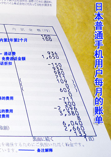 到底在購買各種套餐之后,用戶每個月使用多少錢呢?下面是一份普通的日本手機用戶每個月收到的賬單,通過這份賬單我們清晰看出3G資費的構(gòu)成。在這里,我們清晰看到?jīng)]有漫游費,如果沒有折扣,該用戶至少需要付近3萬日元的費用,實際上,最后用戶需要繳納的費用是6064日元,其中還包含了購買新款手機3380日元的費用,實際上產(chǎn)生的話費是2660日元。
