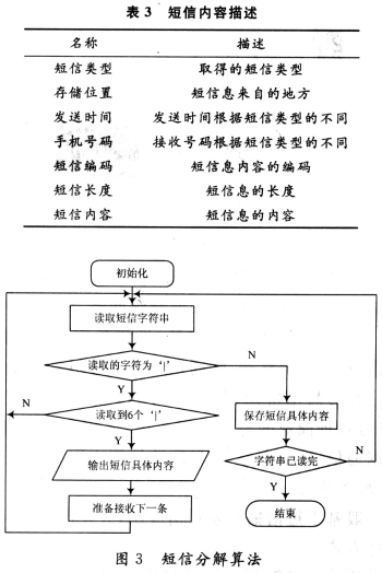 短信貓一次讀取將取得接收隊列里的所有短信息,格式為:短信類型|存儲位置|發(fā)送時間|接收號碼|短信編碼|短信長度|短信內(nèi)容||短信類型|存儲位置|發(fā)送時間|接收號碼|短信編碼|短信長度|短信內(nèi)容||。多條短信以“||”進(jìn)行分隔,每條短信中各項以“|”進(jìn)行分隔,各內(nèi)容描述見表3。本系統(tǒng)中約定購買短信格式為“0商品編號0購買數(shù)量0如(01020)一次最大購買量為9件”,短信分解算法如圖3所示。