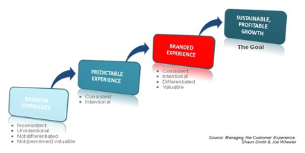 目前多數(shù)電信企業(yè)提供的都是‘隨機(jī)’體驗(yàn)。隨機(jī)體驗(yàn)是各種不連續(xù)端到端體驗(yàn)的集合體。它發(fā)生在整體客戶體驗(yàn)未得到恰當(dāng)管理或企業(yè)漠視客戶與員工的情況下。最終這將導(dǎo)致品牌走向墮落以及丟失有價(jià)值的客戶、利潤(rùn)和企業(yè)價(jià)值。如果企業(yè)不想如上所述這樣慘淡收?qǐng)觯敲此麄冎辽僖龅絼?chuàng)造和交付一種可預(yù)測(cè)的體驗(yàn)——連續(xù)且有意向的(見(jiàn)圖1)。