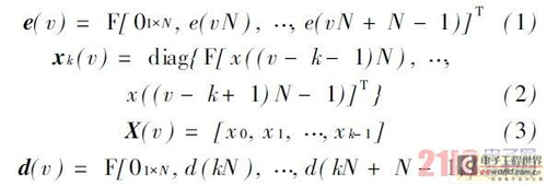 式中,^hk = [ ^hkN ,^hkN + 1 ,… ,^hkN + N- 1 ] T ,k = 0,1,2,,K - 1,它表示濾波器估計(jì)的第k 個子濾波器的系數(shù)。
