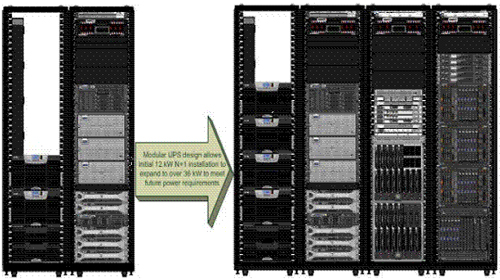 模塊化UPS設(shè)計允許最初的12kW N+1架構(gòu)設(shè)備擴(kuò)展至36kW以上,以滿足未來的電源要求。