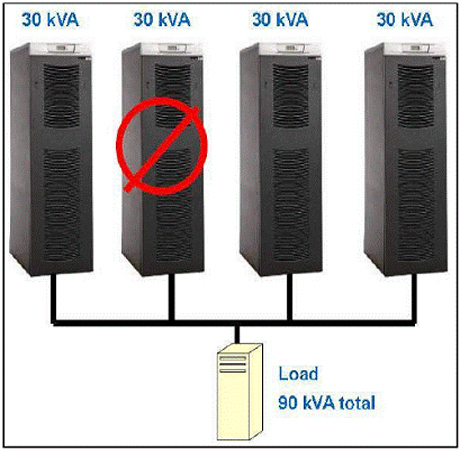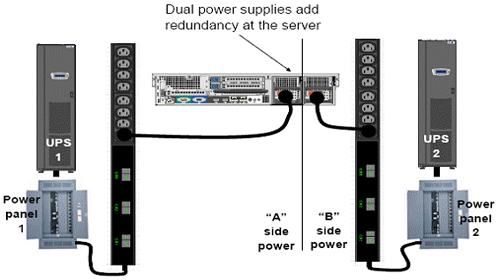 2(N)架構(gòu)與含有雙電源的服務(wù)器配合使用。在這種排列中,每個電源一般都是利用一個獨立的供電路徑。那樣,即使整個動力總成都關(guān)機進(jìn)行維修或維護(hù),服務(wù)器仍然可用。
