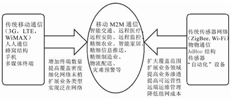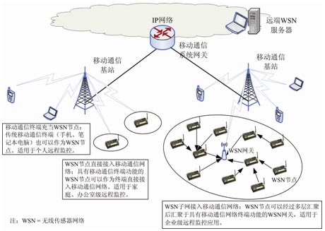 圖:無(wú)線(xiàn)傳感器網(wǎng)絡(luò)和移動(dòng)通信的結(jié)合