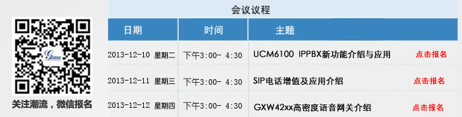 周二UCM專場(chǎng)報(bào)名 周三IP電話專場(chǎng)報(bào)名 周四網(wǎng)關(guān)專場(chǎng)報(bào)名 | ||||||