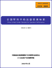 《全國呼叫中心運(yùn)營績效標(biāo)準(zhǔn)》(China Contact Center Standard for Operation Performance,簡稱"CCCS-OP-2003標(biāo)準(zhǔn)"),是由CTI論壇客戶關(guān)系管理學(xué)院負(fù)責(zé)策劃和起草,并聯(lián)合該領(lǐng)域內(nèi)具有代表性的客戶服務(wù)提供商、運(yùn)營商一起同心協(xié)力,站在行業(yè)發(fā)展的最前沿,共同創(chuàng)建的客戶服務(wù)及呼叫中心行業(yè)運(yùn)營標(biāo)準(zhǔn),并最終由信息產(chǎn)業(yè)部中國信息化推進(jìn)聯(lián)盟客戶關(guān)系管理專業(yè)委員會(huì)發(fā)布實(shí)施的行業(yè)標(biāo)準(zhǔn)。該標(biāo)準(zhǔn)填補(bǔ)了國內(nèi)在該領(lǐng)域的一項(xiàng)空白,并將帶動(dòng)整個(gè)行業(yè)不斷地向前發(fā)展。