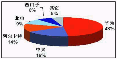 2004年中國大陸NGN設(shè)備市場投資額(億元人民幣)