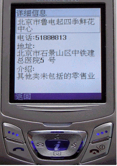 用戶只要在手機的"空中搜"中輸入相關(guān)企業(yè)名稱的一部分信息,例如:新鄉(xiāng) 第二百貨公司,或者輸入產(chǎn)品服務的名稱,例如:快遞,餐飲,就會搜索到符合其要求的一組企業(yè)信息,少則數(shù)條,多達數(shù)十條,點擊任意一個,都會出現(xiàn)詳細的相關(guān)信息,信息中包括企業(yè)的電話、地址、企業(yè)介紹等。這樣的一次搜索需要的費用是由搜索產(chǎn)生的數(shù)據(jù)流量費,費用是一分錢,時間是幾秒,信息服務的提供完全免費。