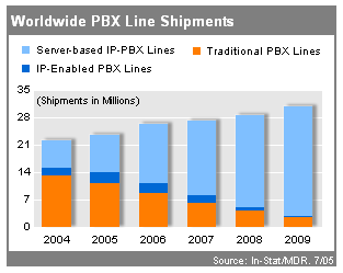 據(jù)In-Stat報告說,隨著IP線路出貨量今年有望超過傳統(tǒng)PBX,IP PBX進入了一個新的成熟階段。雖然整個PBX市場預計將以6.6%的復合年增長率增長至2009年,但傳統(tǒng)PBX正在迅速下滑,IP PBX勢頭越來越強。遠哈助辛集公安打造“三臺合一”系統(tǒng) 2005-08-23 |