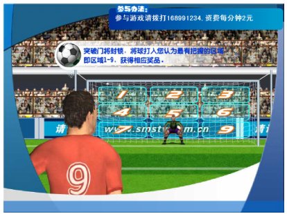在一代足球射門(mén)游戲運(yùn)營(yíng)的過(guò)程中,客戶提出了大量寶貴的建議。我們因此在畫(huà)面及游戲邏輯上做了重新開(kāi)發(fā),如畫(huà)面上采用3D技術(shù)設(shè)計(jì),游戲中的人物更加生動(dòng)逼真,游戲邏輯也不再局限于某一區(qū)域只能得一種獎(jiǎng)品,只要觀眾可以射入,即可得到價(jià)值不等的獎(jiǎng)品,給觀眾帶來(lái)什么樣的驚喜可不一定噢!同此而的是與一代游戲卡通風(fēng)格的效果是完全不同的,二代游戲更適合成人參與。