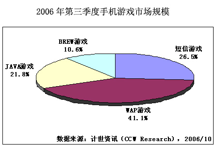計世資訊(CCW Research)數(shù)據(jù)顯示,2006年第三季度中國手機游戲市場規(guī)模達到6.7億元人民幣,比第二季度增長11.9%。 手機游戲市場規(guī)模包括移動運營商、手機游戲服務提供商在手機游戲業(yè)務上的總體收入,但不包括手機游戲軟件開發(fā)商的收入。第三季度,短信游戲增速繼續(xù)放緩,短信游戲市場規(guī)模達到1.8億元,占手機游戲市場份額的26.5%。WAP,JAVA和BREW游戲繼續(xù)保持快速增長,第三季度WAP、JAVA和BREW游戲市場規(guī)模分別為2.8億元、1.4億元和0.7億元。我國正式頒布手機電視行業(yè)標準 采用自主技術 2006-10-25 |