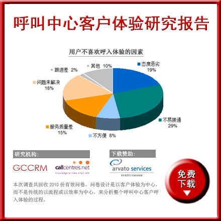 隨著呼叫中心服務(wù)在中國(guó)市場(chǎng)的蓬勃發(fā)展,每個(gè)人也都直接或間接的以某種形式成為呼叫中心的使用者,而這些呼叫中心服務(wù)提供商所提供的服務(wù)體驗(yàn)對(duì)其品牌的塑造至關(guān)重要。為更好了解呼叫中心用戶的客戶體驗(yàn),從而有助于改善并優(yōu)化用戶的呼叫中心體驗(yàn),我們組織了“呼叫中心客戶體驗(yàn)調(diào)查——中國(guó)大陸”,本次調(diào)查由澳大利亞的callcentres.net 和GCCRM共同組織,旨在以自然時(shí)間為序,從體驗(yàn)為中心的角度展現(xiàn)呼叫中心的客戶體驗(yàn),而非傳統(tǒng)的以流程或效率為中心。GCCRM