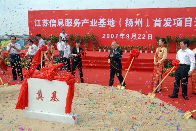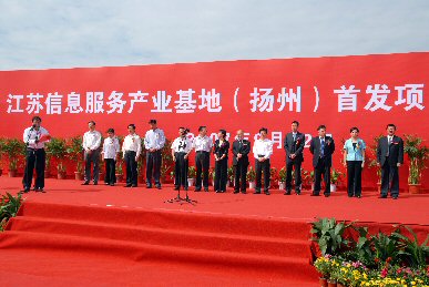 日前,江蘇信息服務(wù)產(chǎn)業(yè)基地(揚州)首發(fā)項目開工典禮在廣陵新城隆重舉行,這標(biāo)志著產(chǎn)業(yè)基地建設(shè)邁入了實質(zhì)性階段。揚州市人民政府市長王燕文和天津泰達(dá)公司董事長劉惠文為奠基石揭幕,市委常委、常務(wù)副市長王榮平致賀詞,江蘇省信息產(chǎn)業(yè)廳副廳長龔懷進(jìn)出席了開工典禮。CTI論壇編輯
